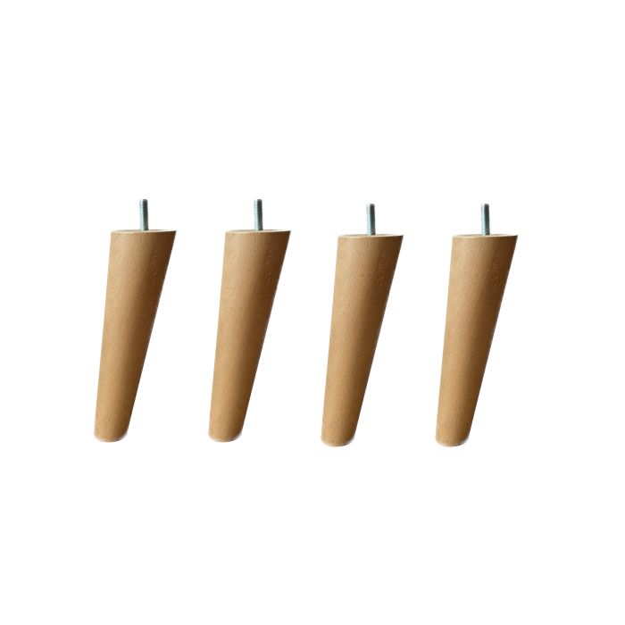 4 pieds fuseau rond incliné bois miel de la marque Someo fabriqués en France. Ces 4 pieds disposent d'une tige filetée de diamètre 8 mm permettant aux pieds de s'adapter à l'ensemble des sommiers de la gamme Someo ainsi qu'à la majorité des sommiers du commerce.
