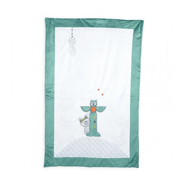 L’édredon en velours du thème "Lapindien" de Trois Kilos Sept est doux, chaud mais également très agréable avec ses couleurs apaisantes et ses jolis dessins empreints de simplicité et de mignonnerie… Bébé va l’adorer !