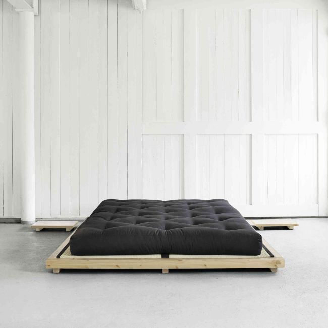 - Lit pour matelas futon en bois massif coloris naturel. Ce lit au style japonais est composé d'un cadre en bois de pin massif. Il apporte une réelle touche d’originalité tout en s'adaptant à votre style de chambre. Ce lit deux places est vendu avec un sommier à lattes et est prévu pour accueillir un matelas futon en 160x200 et 180x200. Élégant et simple, ce lit imitation tatami saura s'adapter à différentes utilisations comme en couchage de tous les jours ou encore d'appoint pour recevoir des amis.