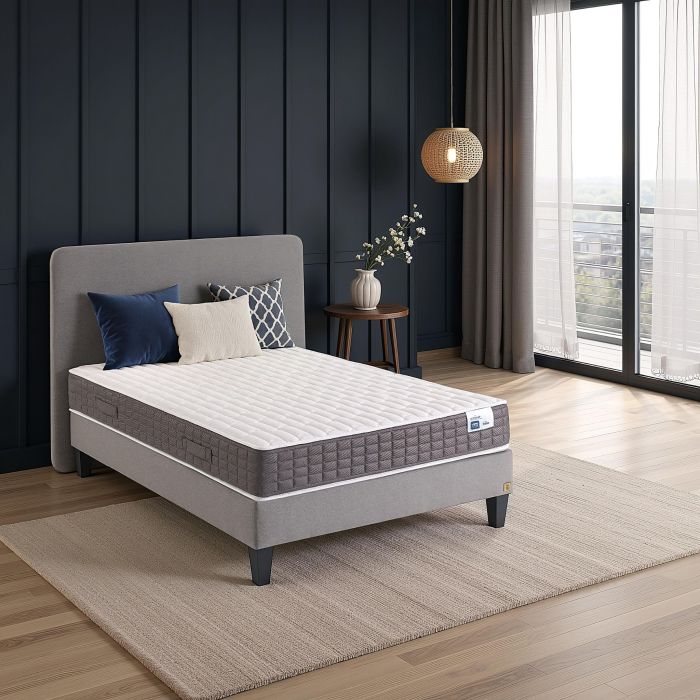 Ce matelas ressorts offre une ventilation naturelle et optimale grâce à ses ressorts ensachés, son coutil stretch 100 % polyester et sa plate-bande 3D respirante. Sa conception réversible avec deux faces de couchage permet d’adapter le confort au fil des saisons, tout en prolongeant sa durée de vie. Résultat : un matelas sain, aéré et durable, pensé pour un sommeil de qualité tout au long de l’année.
