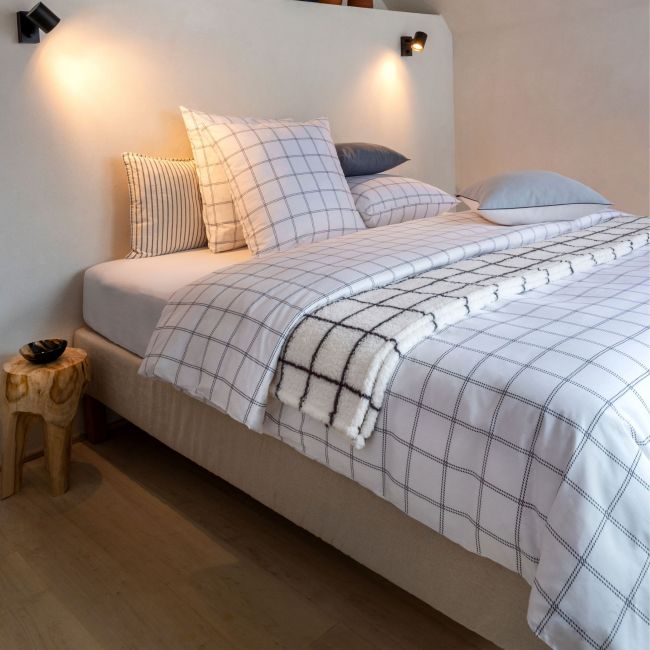 Parure de lit Ribe à carreaux bleu - Terre de Nuit