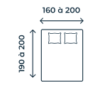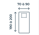Taille matelas 70x190 - 1 personne, 80x200 - 1 personne, 90x190 - 1 personne, 90x200 - 1 personne, 120x190 - 1 personne, 120x200 - 1 personne, 140x190 - 2 personnes, 140x200 - 2 personnes, 160x200 - 2 personnes, 180x200 - 2 personnes, 200x200 - 2 personnes
